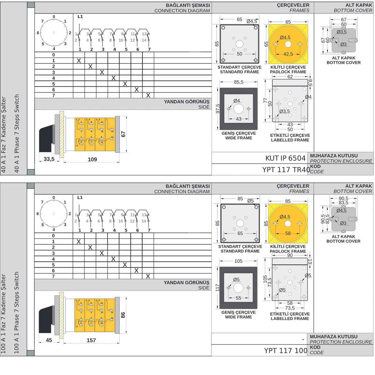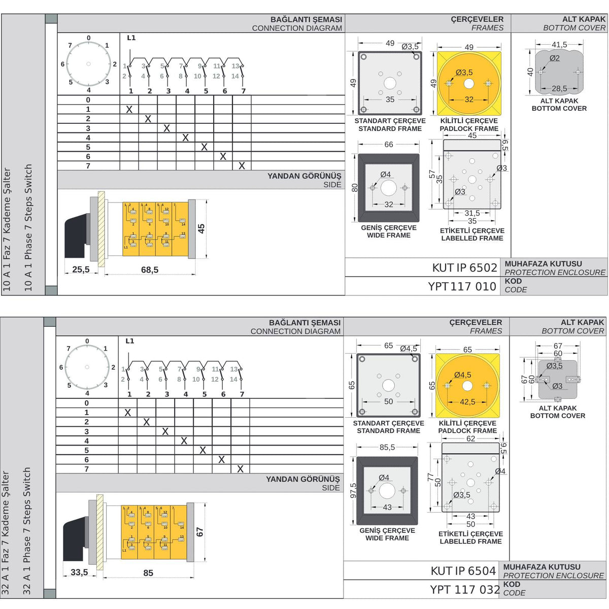 Step switch 0-1-2-3-4-5-6-7, rotary switch, 1 pole, 10-160A, manufacturer YPT117 OPAȘ (Turkey)
