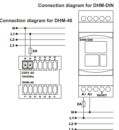 LCD display 230VAC operating hours meter with digital reset button.