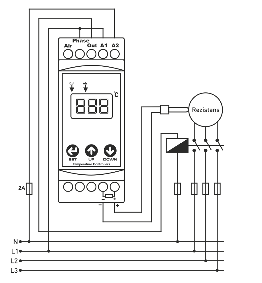 Temperature controller with thermostat on DIN rail ON - OFF - temperature switches