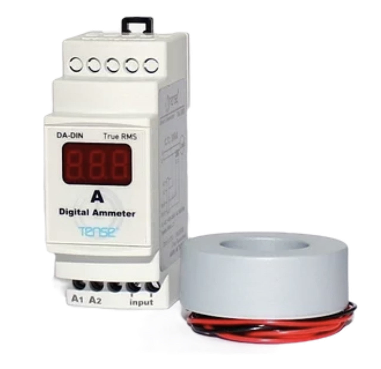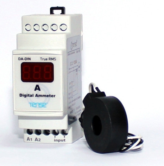 The ammeter is mounted on a standard 35 mm DIN rail