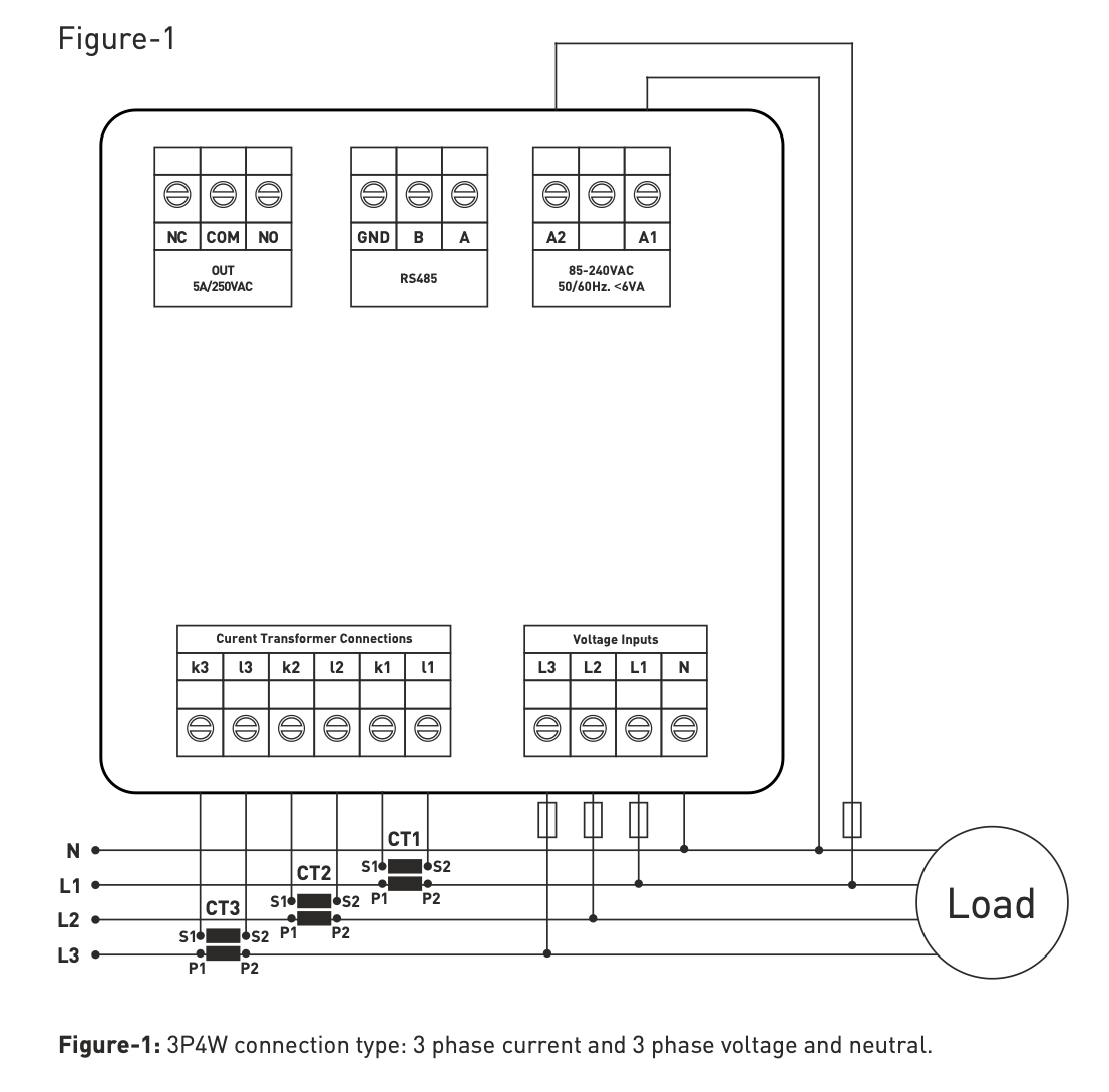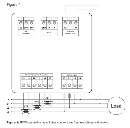 - Displays minimum, maximum, average and reference values I1,I2,I3,S1,S2,S3 High/low voltage, current, frequency (adjustable) Phase-neutral or phase-phase protection (adjustable)