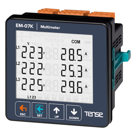 Three-phase multimeter - three-phase multifunctional digital measuring panel, current, voltage, frequency and total power indicator, energy kW*h and ModBus RTU manufacturer TENSE (Turkey), measuring panels.