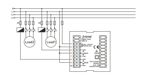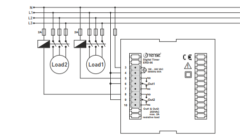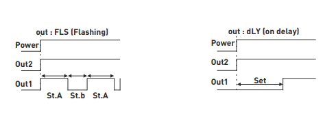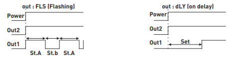 Releu temporizat cu două funcții - o funcție de întârziere la pornire și o funcție de releu ciclic.