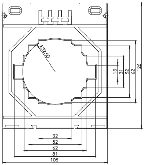 Transformator de măsurare glisant pentru curenți nominali primari de 1500 A, curent secundar de 5 A, ieșiri nominale de 25 VA, disponibil în clasa de precizie 0,5S.